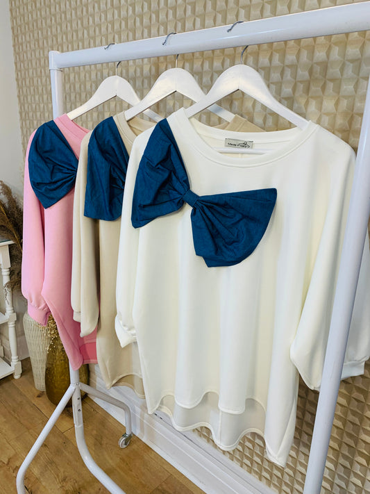 Denim Bow Sweatshirt