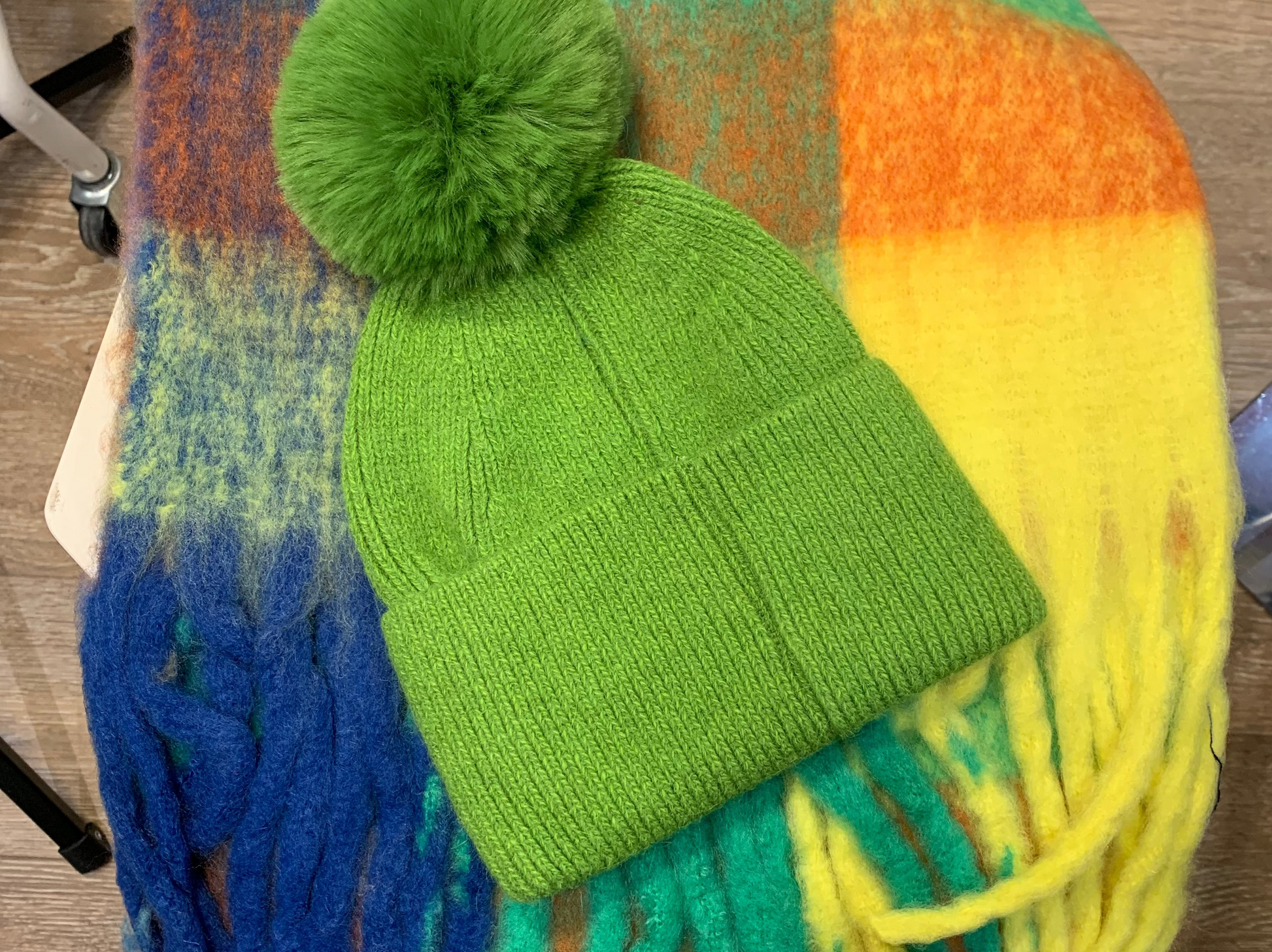 Rainbow scarf and Green Hat set